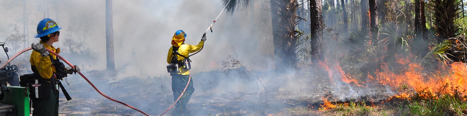 UCF is proud to utilize prescribed burning as one of our forest management practices. This technique of burning the forest when weather parameters and fuel moisture are in line to produce a predictable and manageable fire keeps the campus safe from wildfires that can ignite during our frequent lightening storms. Many Florida native plant species depend on these fires for regeneration. Florida ecosystems have inherently experienced fire long before urbanization and are accustomed to the regenerative properties that fire produces. In our ever changing native Florida landscape, fire is a catalyst for change and growth.